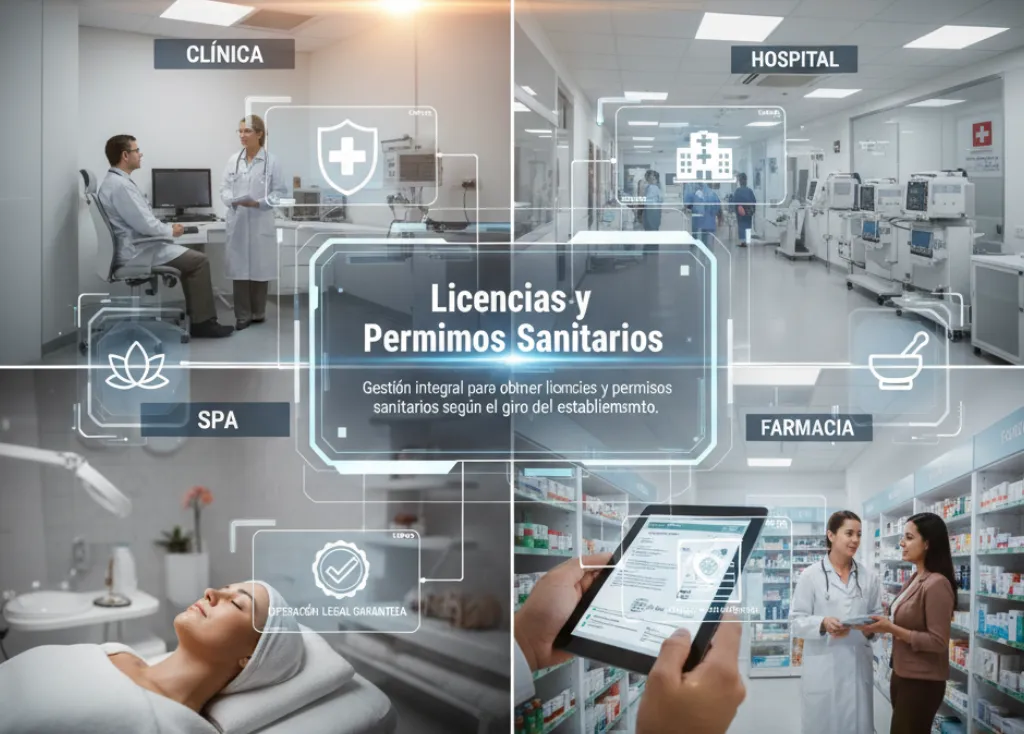 Gestión integral para obtener licencias y permisos sanitarios según el giro del establecimiento (clínicas, hospitales, spas, farmacias).